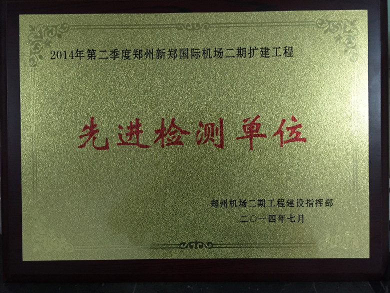 近年来多次被河南省建设厅和郑州市建委评为工程检测“先进企业”和建筑节能与墙材革新工作“先进企业”。2012年被中国建筑业协会评为全国建设工程质量检测行业“先进单位”。