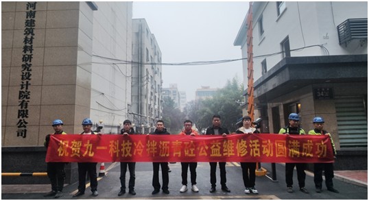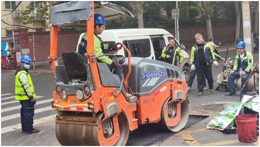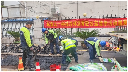 2024年11月13日上午,河南九一环保科技股份有限公司技术经理张欣伟、工程经理王华亭等10余名工程人员,驾驶压路机、切割机、振动机等工程机械及4吨冷拌沥青砼进入施工现场。上午10时,沥青混凝土路面公益维修活动正式开始,经过数小时精准施工,公益活动圆满结束。此次道路维修施工均使用河南九一环保科技股份有限公司自主研发生产的环保型冷拌沥青砼。